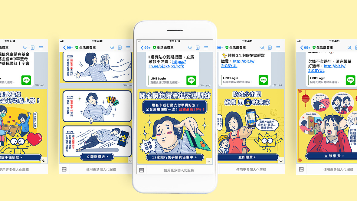 繳費步驟化繁為簡,不再被帳單追著跑!為解決使用者在繳費時,常需重複填寫資料、易漏繳帳單…等痛點,生活繳費王將使用者的個人繳費資料、規劃扣款帳戶、帳單提醒等功能做統整,方便使用者在同一平台,一次管理所有帳單。 針對不同繳費項目綁定支付方式,即可直接在平台上繳民生帳單、信用卡帳單、政府代收及愛心捐款。系統自動紀錄使用者最常使用帳戶及上次交易,只需更改費用即可馬上繳款,帳單提醒功能更有效降低漏繳或遲繳帳單的機率。